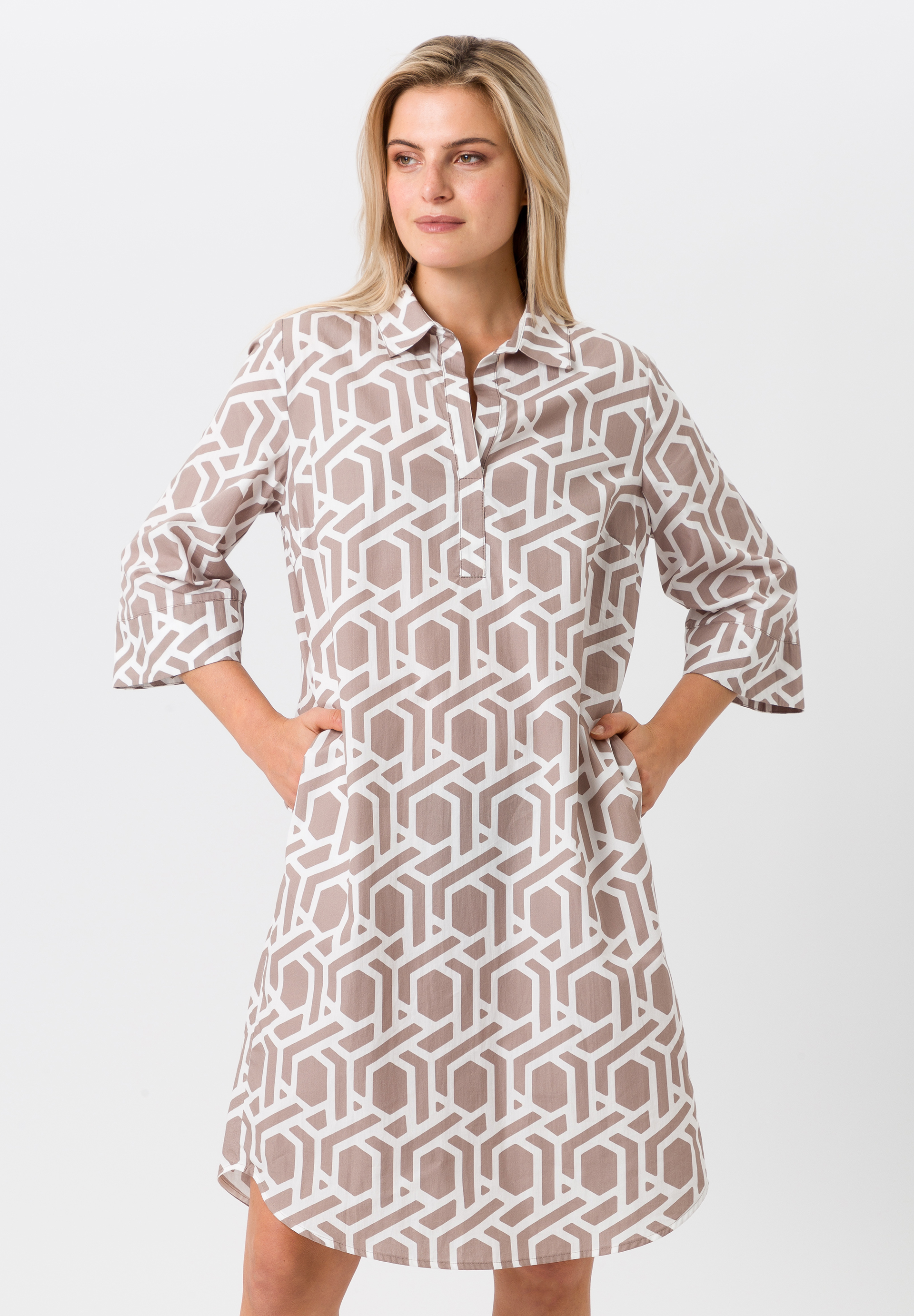 Luftiges Kleid mit grafischem Print, halber Knopfleiste und klassischem Kragen. Die lässige Passform macht es zum perfekten Begleiter für warme Tage.