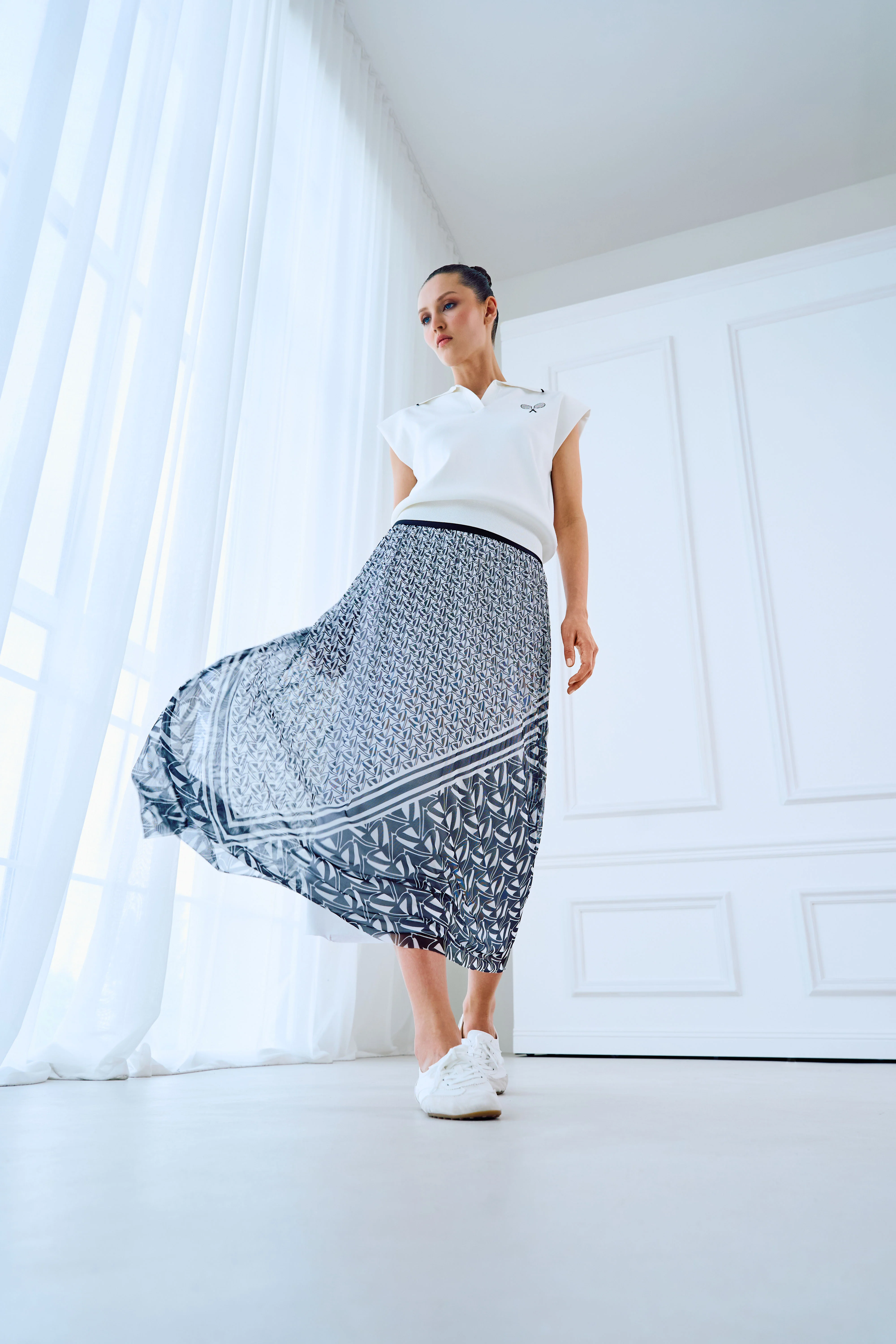 Trotz aller Klassiker darf der Spaß an neuen Trends nicht fehlen. Moderne Schnitte wie taillierte Blazer oder Modelle mit betonten Schultern liegen im Trend und strahlen Selbstbewusstsein aus. Besonders bei Hosen, Blazern und Kleidern gibt es eine große Auswahl an verschiedenen Modellen, die von klassischen bis zu trendigen Varianten reichen und so für jeden Geschmack und Anlass das passende Design bieten. Ein auffälliges Statement Piece wie ein gemusterter Rock oder ein farbiger Blazer setzt modische Highlights und verleiht dem Look eine individuelle Note. Modebewusste Damen ab 40 mixen gern Alt und Neu: Sie kombinieren bewährte Lieblingsstücke mit aktuellen Modetrends und kreieren so Looks mit ganz persönlicher Handschrift.